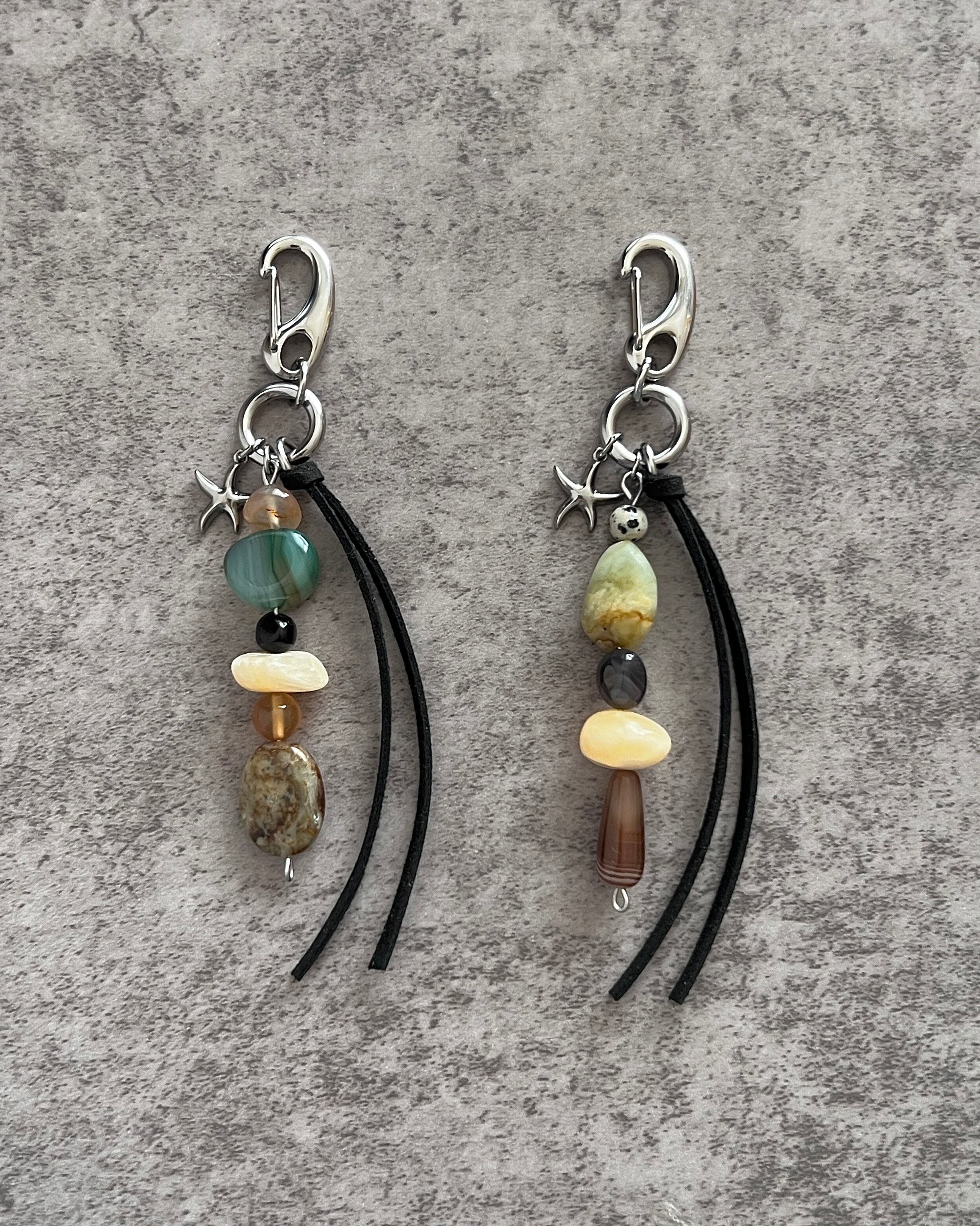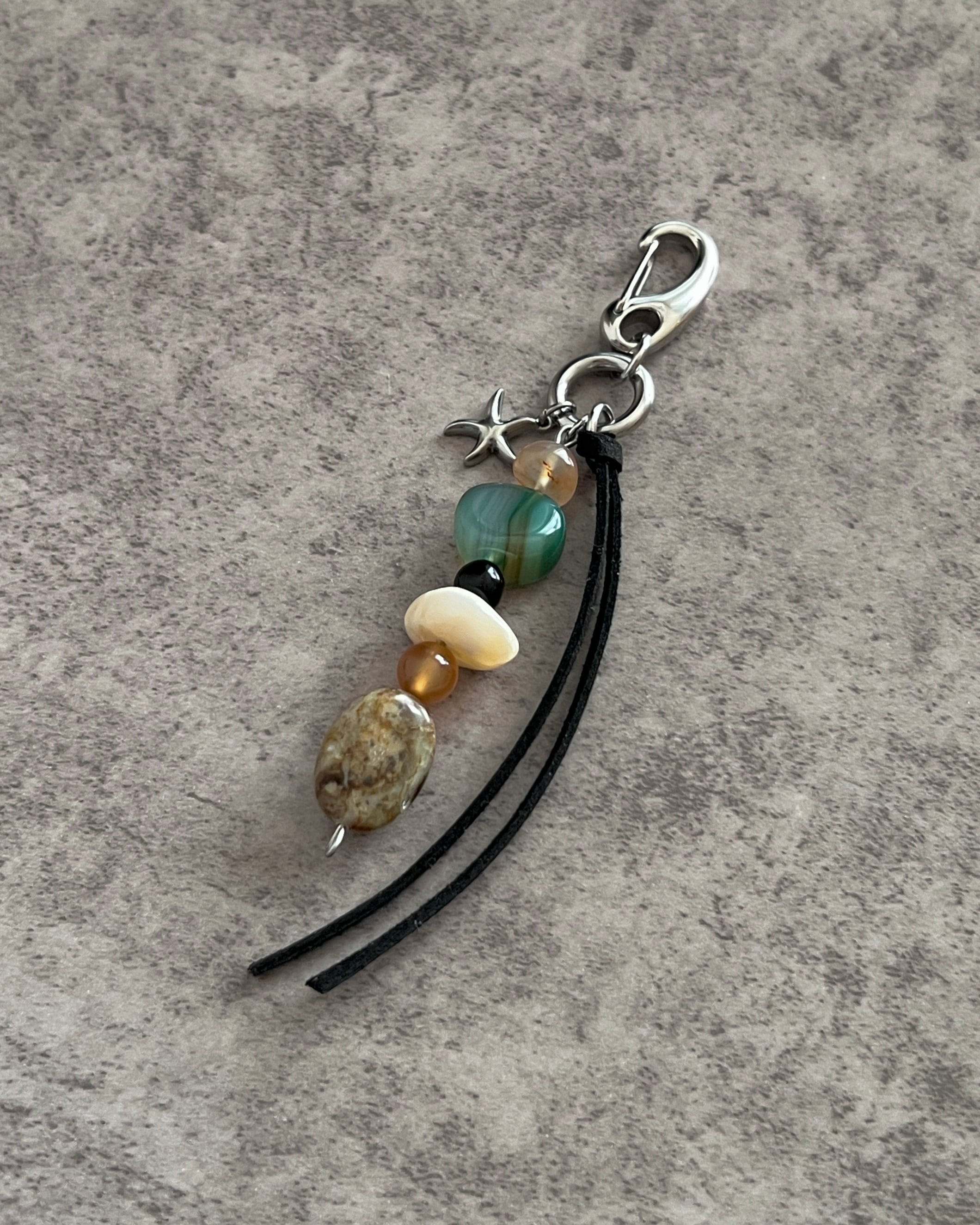 天然石瑪瑙、オブシディアン、カーネリアン、ヒスイを使用したキーチェーンです。