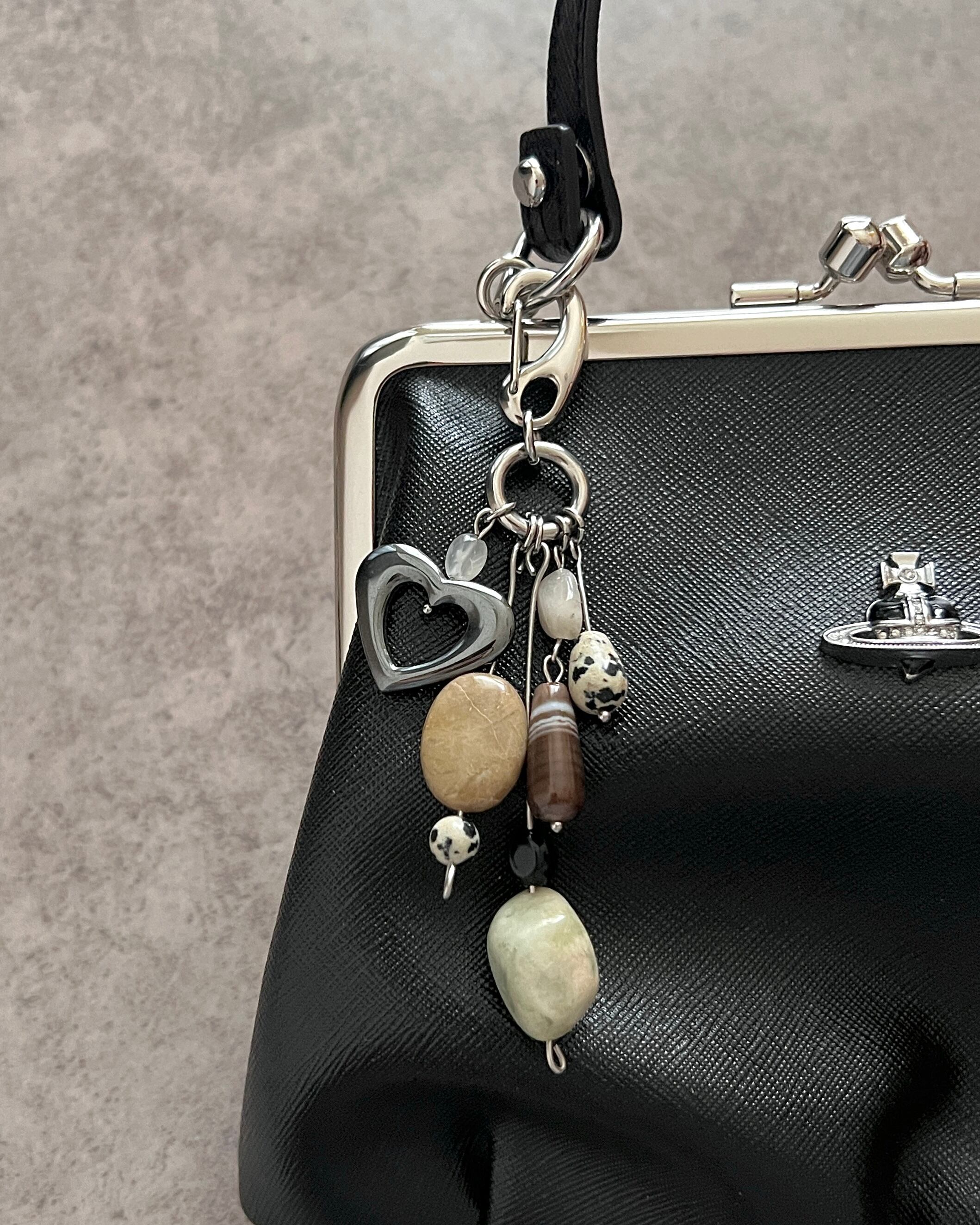 天然石ヘマタイト、オブシディアン、ヒスイ、ダルメシアンジャスパーを使用したキーチェーンです。
